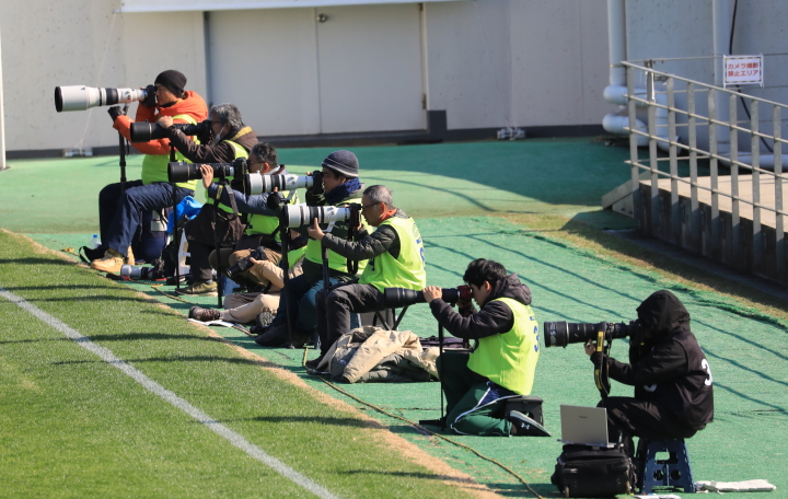 日本生命貝塚グランドへ !! JR東貝塚のホームから見える黒い鉄柱群が新しく完成した本拠地 !! ホーム進行方向の東側しかない改札を出て、踏切を渡り直ぐ右側の小さな公園を 突き切ると、もう広大な敷地を囲むフェンスに行き付きますので、そのフェンス沿いに ひたすら西方向へ2~300m程進み、右へカーブした所の正門に辿り着きます。 正面がグランドでライトの位置、右側に立派なクラブハウス兼屋内練習場が見えます。 グランド沿いに左へ進むと、先ず一塁側ブルペン、次いでベンチ、なお進むとかなり 高さのある鉄階段が見えます。それを昇った所がバックネット裏のスタンドでした。 屋根付き四段の100を超える観客席が設置されています。 両翼100m、中翼120m、内野ファールドーンがかなり広く天然芝の立派なものでしたよ。 施設の写真は、「社会人野球フォト」に追加アップしてます。 選手たちは今日から合同自主トレ、午前の勤務を終えて13時過ぎから始まりました。 昨年末に卒業した7選手の姿は当然見えません、5人の新人選手の内、本田くんだけ 確認しましたが、廣本キャプ、藤井サブ、阿加多サブ、ベテラン投手の佐川さん始め 参加選手全員でのアップを少し見て引き上げました。 帰途は天王寺まで戻り御堂筋線で大国町下車し予定していた今宮戎へ寄りました。 ところが今日は本戎というか大変な混みようで正面南門は入場制限してます。 比較的空いている東門から入ったんですが、中々福娘たちの前へ辿り着けません。 えべっさん参拝の本来の目的、福笹があちこち飛び交っていますから、危なくて どうしても引いてしまいます。それでもなんとか数人の福娘を撮ることが出来ました。 まあそんなこんなで今日の遠出は無事終了 !! 社会人野球フォト2 フォト |