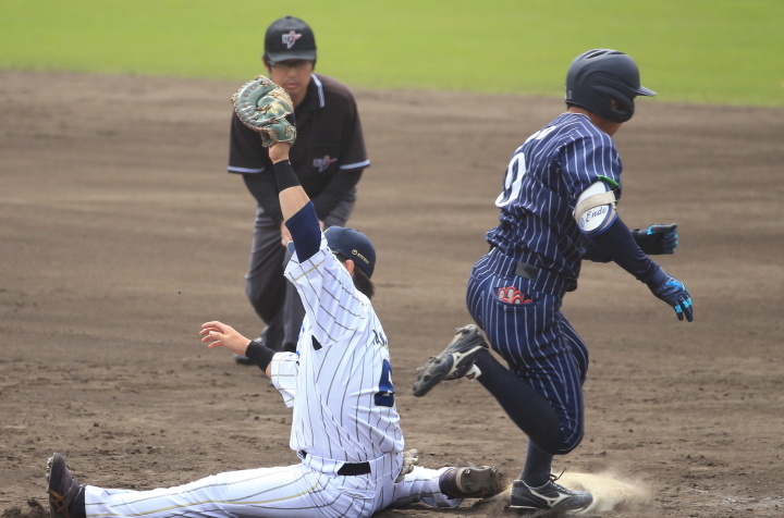 | ~第29回関西大学野球5リーグ対抗戦~於わかさ京都 3年ぶりのこのトーナメント戦は、リーグから選抜された各30名のチーム構成、 接戦を大いに期待。 ① 関西学生L 5-4 関西六大学L 4点を先行された関西学生は、6回ツーアウト満塁から、高波(川越東→関学4年) レフト前タイムリーとエラーに依って一挙4得点で振り出しに戻す。 10回から無死一、二塁のタイブレーク、10回裏ツーアウト二、三塁に杉浦(大谷→ 同大4年)が二塁への内野ヒットでサヨナラ勝利。 ② 阪神大学L 2-0 近畿学生L 両チーム無得点で迎えた8回阪神大学Lはワンアウト三塁から、大槻(駒大苫小牧 →大体大4年)のセンター前タイムリーで先制、続く4番近藤(八戸学院光星→天理 大3年)がセンター越え二塁打で決勝の追加点。 |