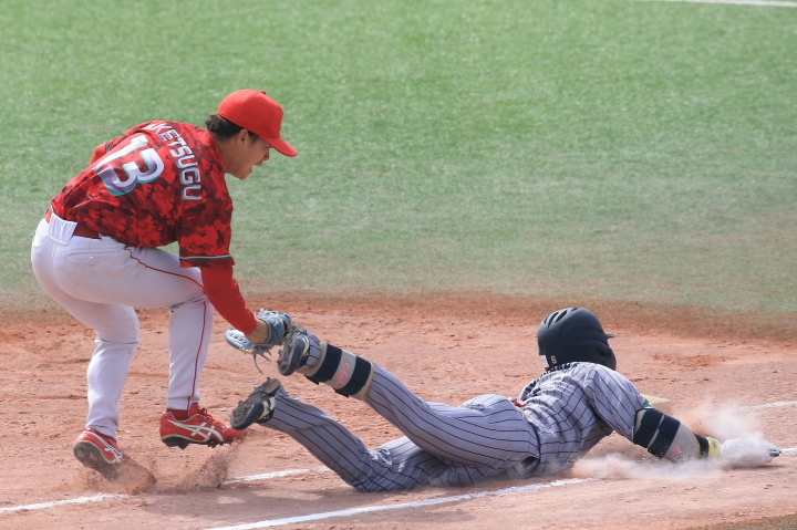 | ~日生貝塚グランド~ 環太平洋大とのOP戦。 施設が立派過ぎるのか、適当な撮影ポジションが見付からないので、 写真リポートは今回限りになります。 |