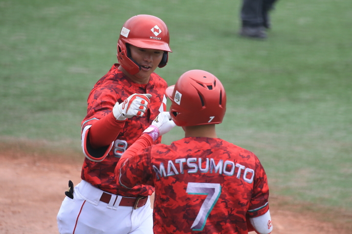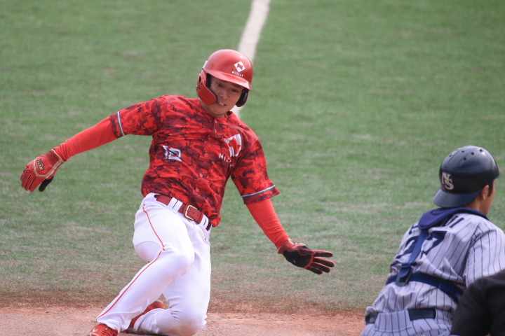 ~関西学生秋季リーグ・関関戦②試合目(わかさ)~ ① 関大 7-1 関学 関大が、伝統の関関戦で2連勝、勝ち点5の完全優勝。 関大は初回、有馬四球で出塁、つづく 富山(3・大阪偕星)の左越2ラン先制。 5回には、岑(広陵4)、下井田(報徳2)の適時打などで4点追加。 6回、有馬の左前安打や四死球で一死満塁から下井田の犠飛 で1点獲得。 投げては5人の継投で快勝。 尚 関大の受賞者は以下の通り。 最優秀選手・関大金丸 最優秀投手・関大金丸 ベストナイン・投手金丸、捕手有馬、一塁手富山、三塁手下井田。 |