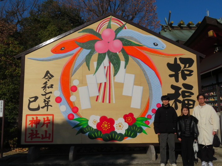 ~R5年の初詣・片山神社~ 元旦の初日の出は、生駒山脈上の薄雲が切れないまま昇る。 参拝者が年々少なくなっているのか、スムーズに拝殿へ着く。 今年こそ、新コロナの終息を祈願しつつ。 大絵馬の前では、見知らぬご家族の依頼でシャッターマンに変身 !! |