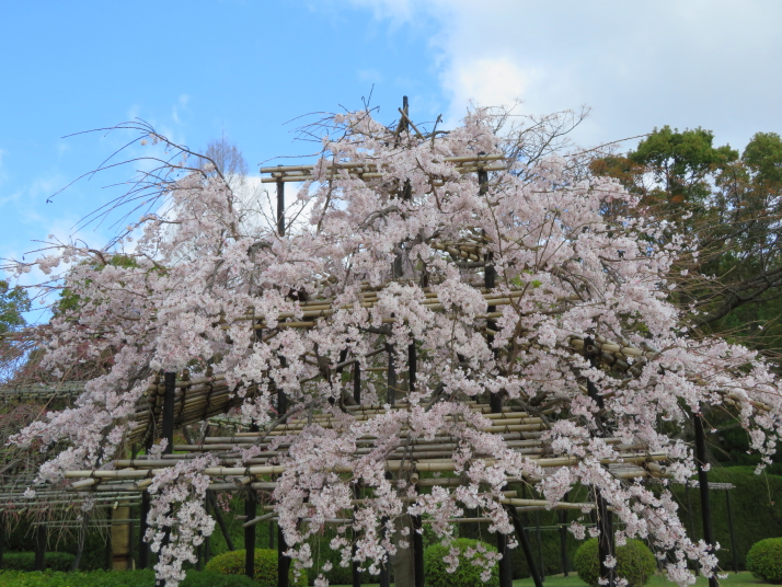 今年の観桜も近場から、迎賓館の醍醐寺のバイオ枝垂桜は満開、その他は7分咲き。