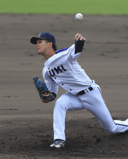 | 再三のピンチを切り抜けた、先発・佐伯亮太朗(高川学園→東京情報大) リリーフ・又木鉄平(日川高→東京情報大)、先輩後輩の完封リレー。 打線も活発、6回木倉の2点タイムリー、7回越智達矢(丹原高→明大)の 2点タイムリーツーベース、8回山田タイムリー でダメ押し。 9日の代表決定戦に進んだ。 |
