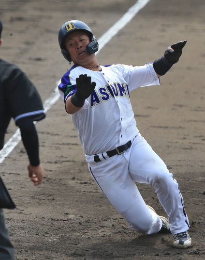 | 日本選手権対象大会の一つ。3年目の阿部翔太(酒田南→成美大)が1安打完封。 打っては1年目皆川仁外野手(学法石川→立正大)の猛打賞、2年目河野勇磨内野手が タイムリースリーベース、しかも相手投手のWPでホームへ果断にダイビング。 |