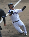 | 先発佐川は5回を無失点、続いてドラフトオリ5位の小林が登板した後半から雨が強くなり、 十河監督の配慮か2回・1/3で早々に交代、藤田、阿部が雨中のマウンドを守る。 2点ビハインドの最終回二死走者なしから、3安打に2四球を挟んで同点に追い付く。 |
